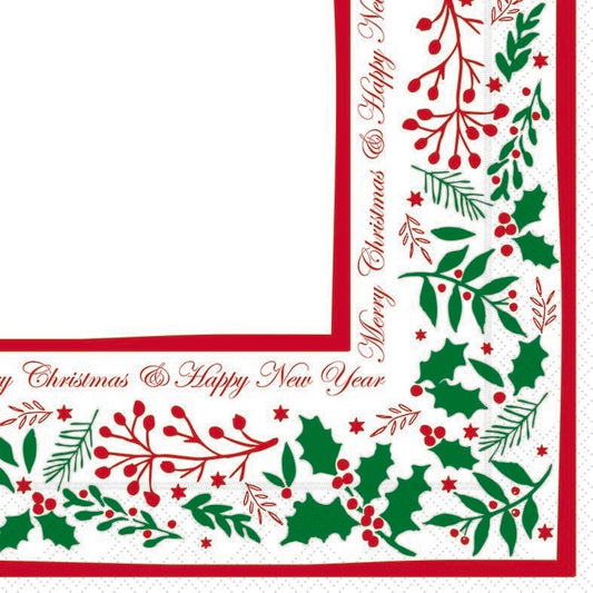 40cm 3Ply Jolly Holly Serviettes per 100
